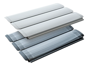 Bomba de calor Inverter, cubiertas de lamas de PVC y policarbonato.